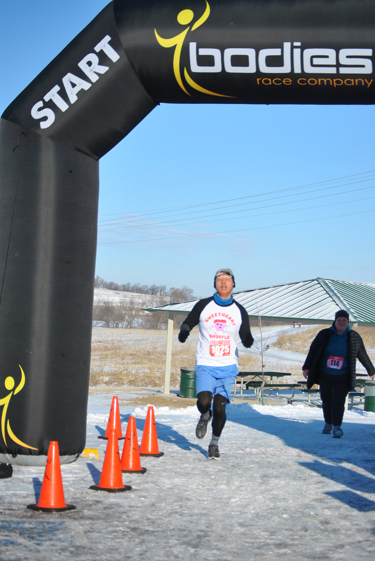 The nearly 0-degree temperature caused my ears slight pain for the first mile, but then my body produced sufficient heat for me to forget about the cold. Because pretty much all of Nebraska received snow the day before, the trail was covered in snow but thankfully not slick enough to worry me. I could see my eyelashes had frozen but did not realize how hilarious my entire face looked until a lady asked to take a photo of me upon my 10K completion to show her husband the brutality of the temperature.