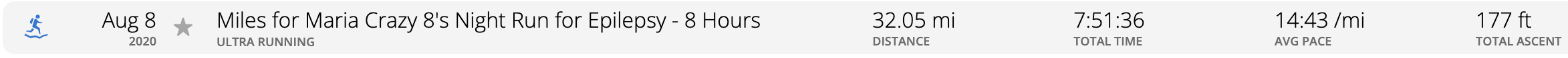 Miles for Maria Crazy 8's Night Run for Epilepsy - 8 Hours Garmin
