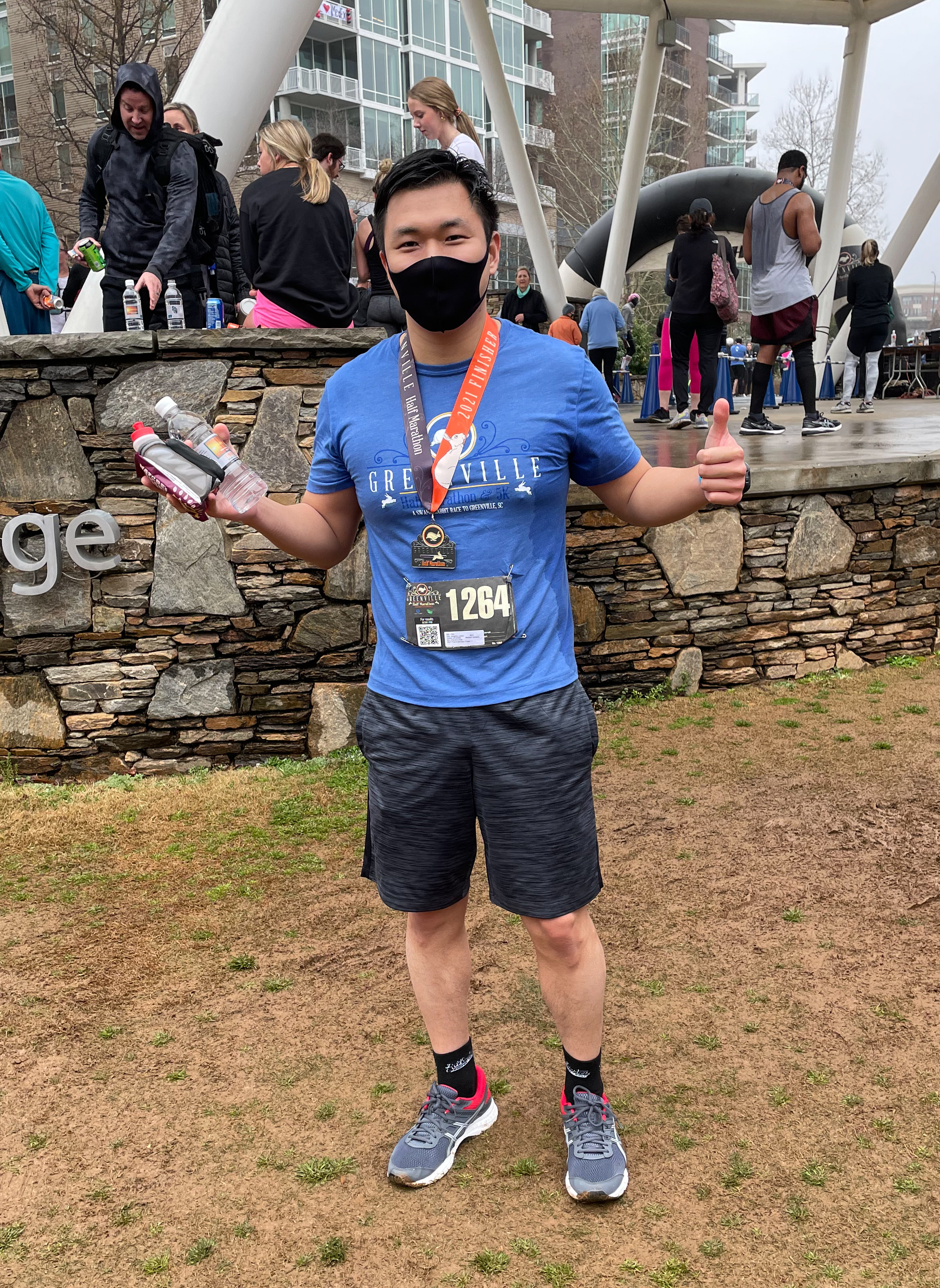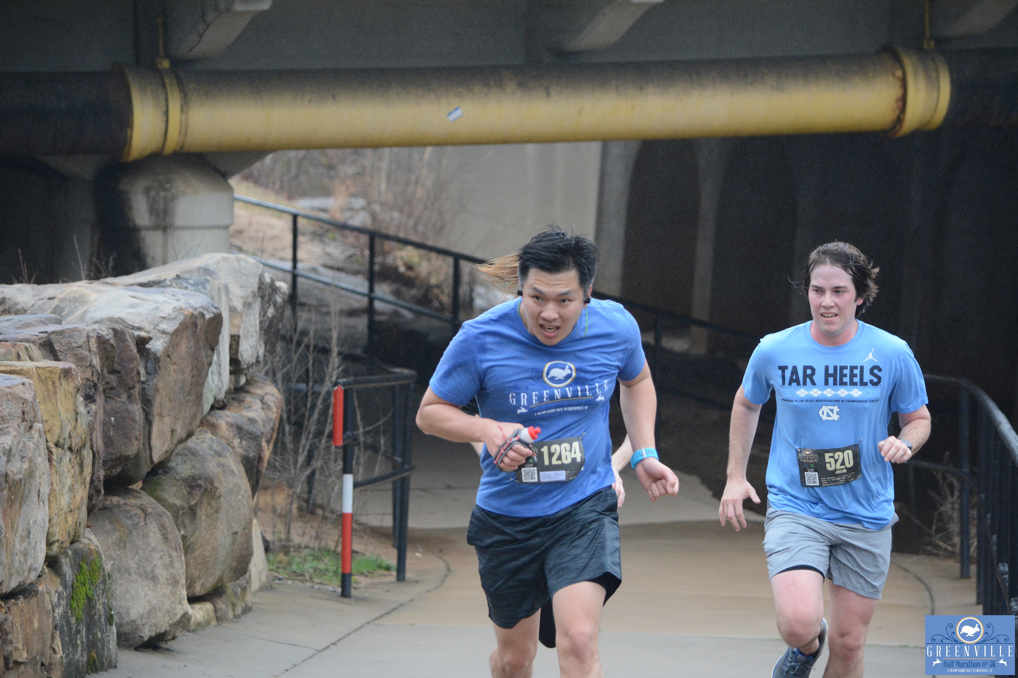 I prefer to participate in a race or two every month to preserve my fitness and motivate myself to consistently train. Running out of time in February 2021, I only a few days before registered for the Greenville Half Marathon on the last Saturday of the month in South Carolina, advertised as the “fastest half marathon in the South.” Half marathoners would take off in Travelers Rest, run through the Swamp Rabbit Trail, and finish on TD Stage at the Peace Center in downtown Greenville. I doubted I could challenge my personal best in the distance at this moment but still shot for a sub-1:50:00 on this net-downhill course.