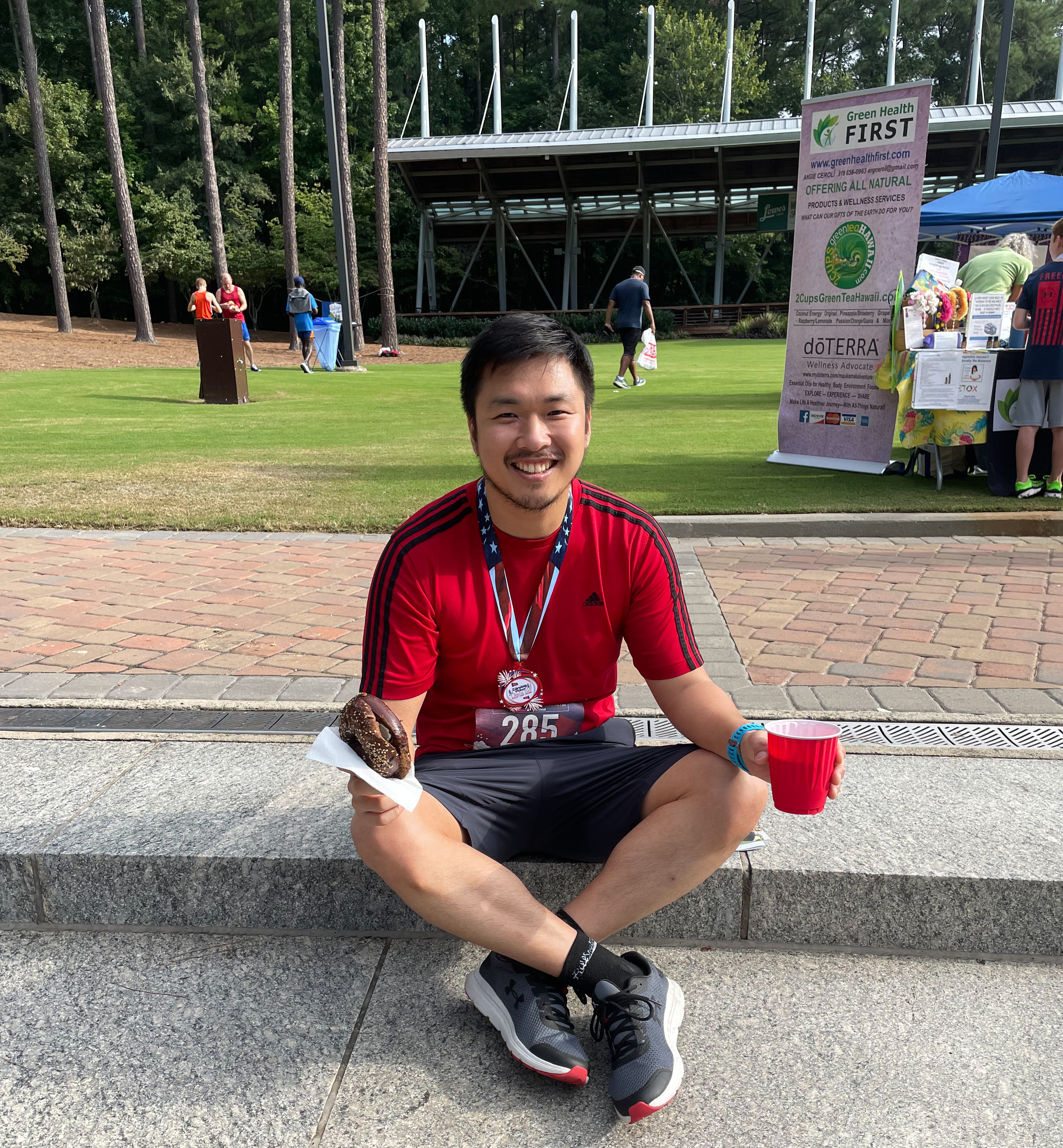 I ran without music for the second consecutive race, and the more I do this the more I enjoy running because I become more aware of nature and my surrounding, especially if the course can be confusing. Often when I listen to music, I become anxious and impatient for each song to end that would signify how far I have gone, making the run feel like homework I have to do rather than a hobby I choose to do. I chatted with fellow runners and exchanged positive cheers with volunteers, as they continued to shout my bib number, “Go, 285! We see you, 285!” The course remained mostly flat and breathtakingly gorgeous with a lake at the center surrounded by armies of trees, and the heat did not bother me, as I knew I was only covering a 10K, 6.27 miles according to my Garmin. I crossed the finish line in 54:30.5, by far one of my worst 10K times ever but not surprising due to the summer heat and I nowhere near emptied the tank. Race or not I was going to run, so why not make it a race on this day off where I can make new friends who reside in my area?