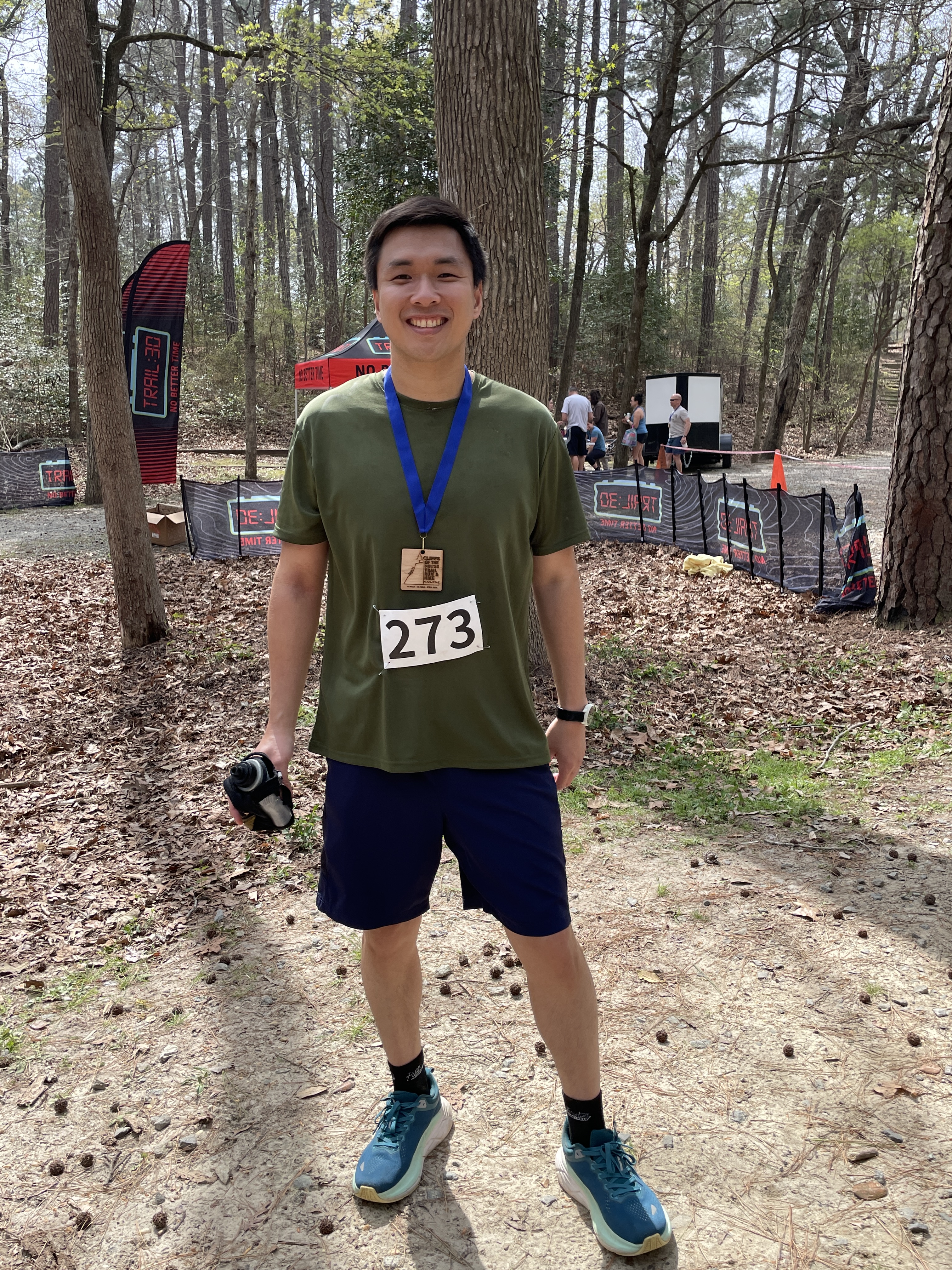 I may have started out too ambitiously in the first loop, as I ran significantly faster than I intended and never took any walking break even in major climbs. Completing the first lap, I still felt strong, then after going up and around the picnic shelter and back down to begin my second lap, my body instantly felt heavier. The increase in temperature likely contributed to this, but I was relegated to walking here and there, especially during steeper climbs. I crossed the finish in a gun time of 2:45:51, with an elevation gain of 1,293 feet according to my COROS Pace 2. I had zero expectations going in, as I did not know how to strategize my pace without even knowing the difficulty of the course beforehand and not being an experienced trail runner. My legs felt fine, but my vomiting at a gas station on my way home tells me my body must have been fatigued. I simply take this as a learning experience and a fun long run.